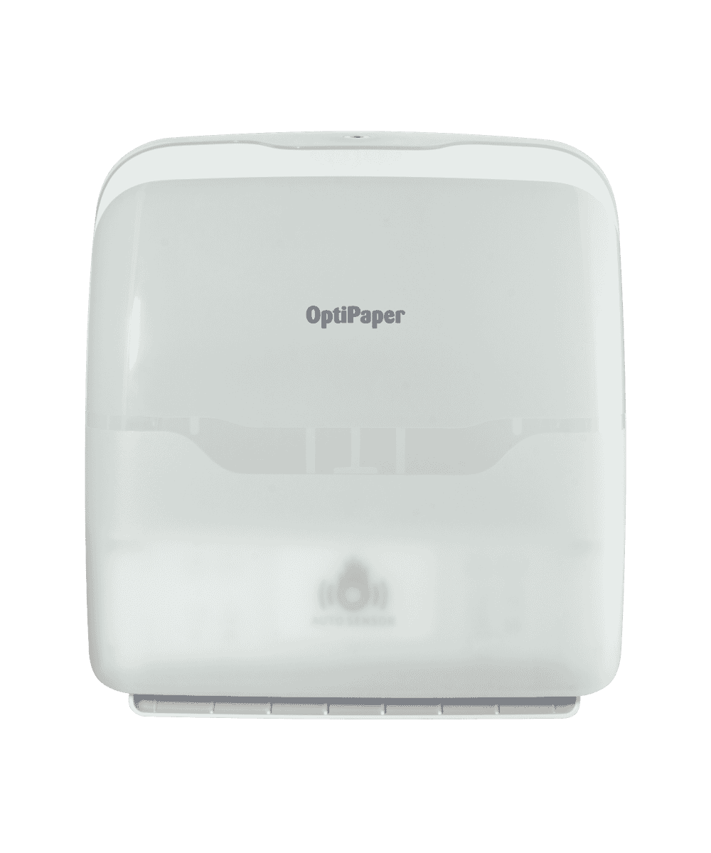 O toalheiro eletrônico para papel toalha bobina é o novo dispensador da linha OptiPaper. Ele apresenta um sistema automático inovador de auto corte que evita com que os usuários necessitem tocar o aparelho para retirar a folha.